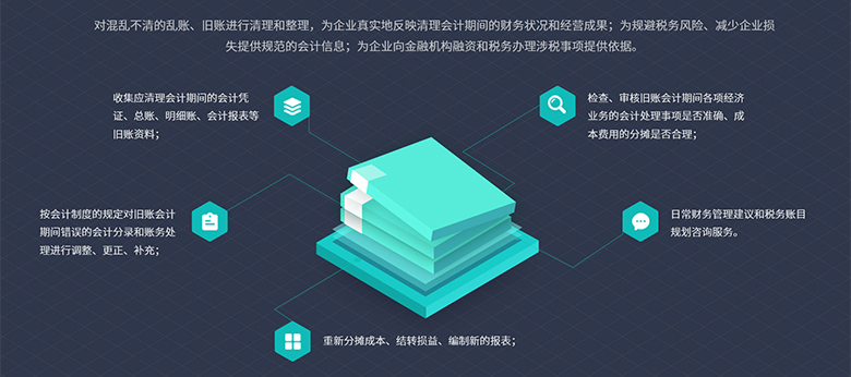 清理乱账服务包括对企业账目进行全面核查、修正和优化,具体内容如下: