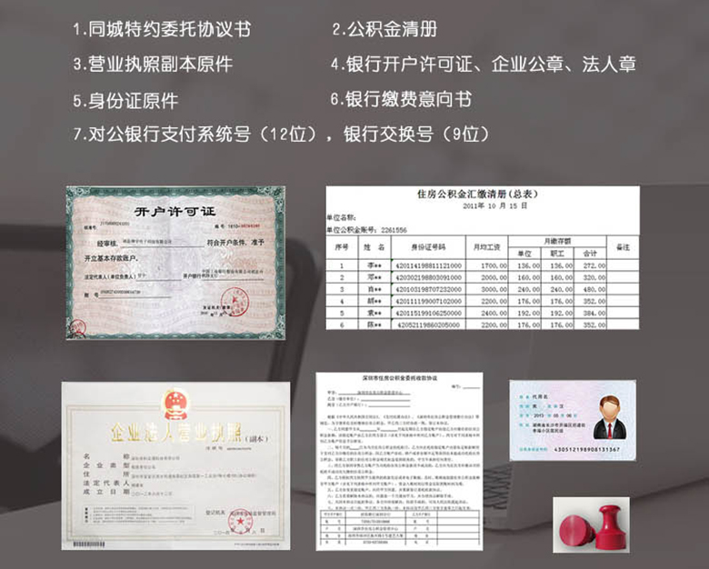 - 企业需提供营业执照副本、开户许可证、法人身份证等基本资料;