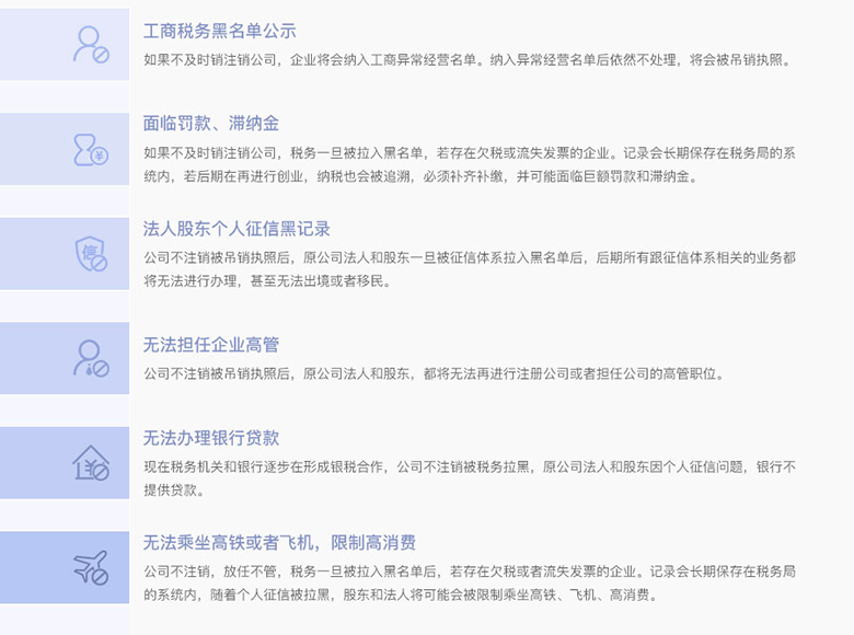- 避免信用污点:未依法注销的企业可能被列入工商异常名录或黑名单,影响法定代表人和股东的个人信用。